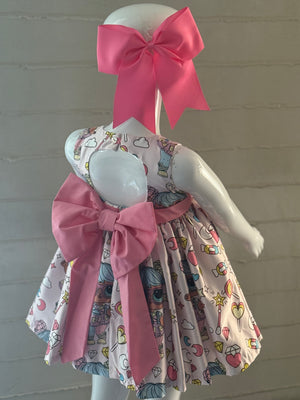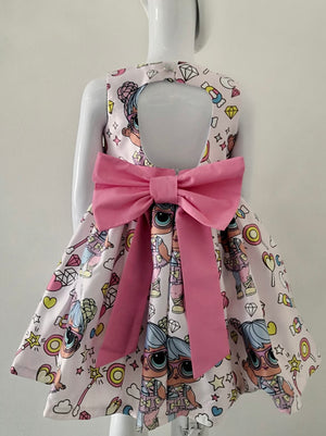 Vestido de seda de tela de LOL ampon con apertura en espalda y detalle en cintura con moño en espalda.
