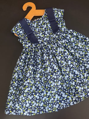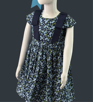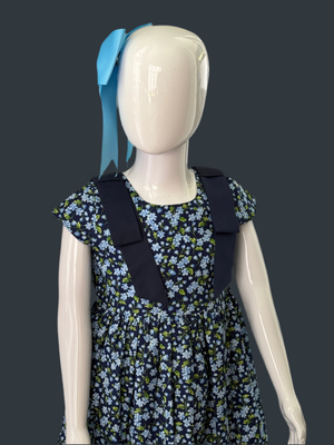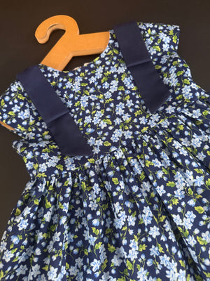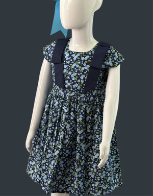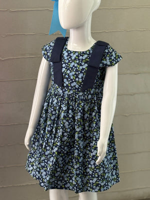 Vestido de algodón estampado en flores con moños en hombros color marino, perfecto para cualquier evento!